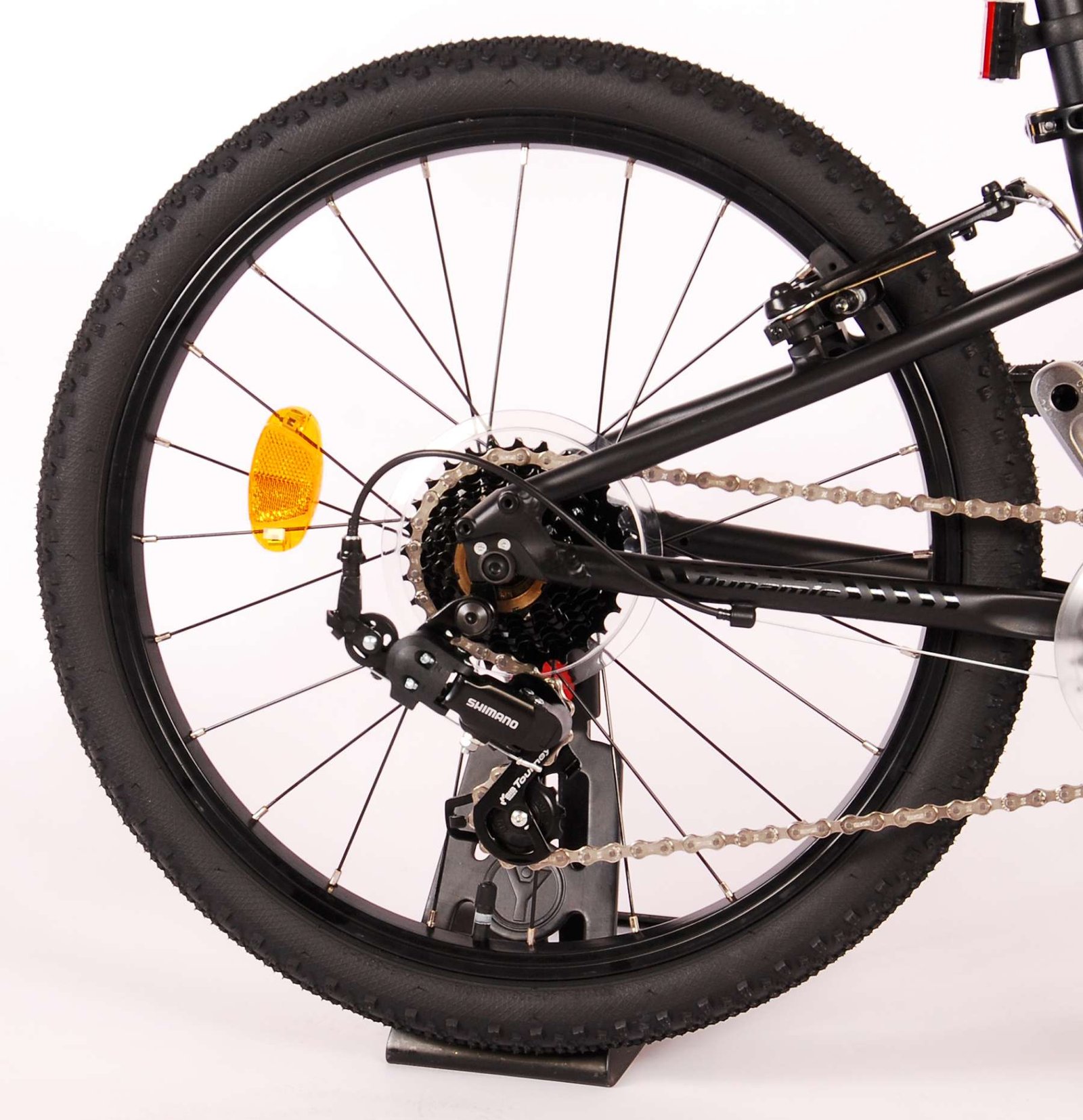 Veiligheid staat voorop! Daarom heeft deze gave fiets geen terugtraprem maar twee handremmen. Daarnaast heeft de fiets reflectoren in de wielen, reflectoren voor en achter op de fiets. De gekantelde stuurpen zorgt voor een beter zicht op de weg, maar is daardoor niet in hoogte verstelbaar. Ook aan het comfort is gedacht. De mooie mat zwarte Dynamic fiets heeft 7 versnellingen en een extra licht aluminium frame. Om zo lang mogelijk van de fiets te kunnen genieten heeft de fiets een extra lange zadelpen waardoor de fiets nóg langer meegroeit.